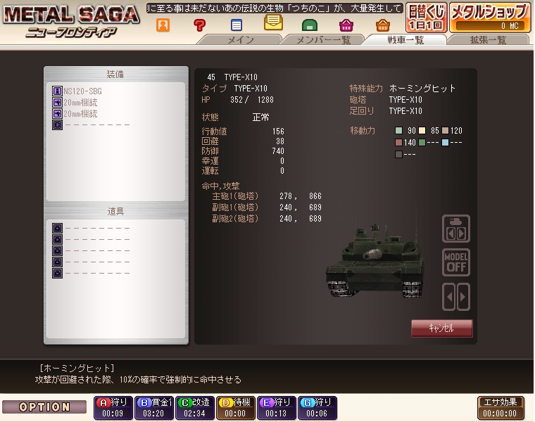 guraグラウンド・ゼロにてNDIDにより敗北!新戦車探索中に襲撃される!ついに念願叶って手に入れたぞ! これで強化出来る!!現在、我カンパニーは、グラウンド・ゼロに激戦中CSの商売に失敗するは、 デスルーラされるは、で財政がピンチです。しかし、その苦戦さなかにやっとの思いでMBT TYPE-X10を手に入れました!再び20億G以上に貯まったら大改造を予定します。